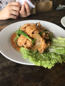 On réserve un tour gratuit vers un ferme de vers a soie, et en attendant on va manger. On prends le premier restaurant du coin. Vraiment pas cher, et très bon. On aura du mal a trouver mieux par la suite.