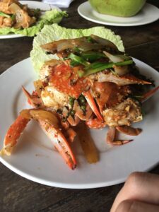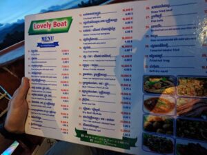 Fatigués mais pas inspiré par la nourriture de l’hôtel, on finit par tomber sur un petit resto “Khmer grill” un peu moderne et avec un serveur super sympa.