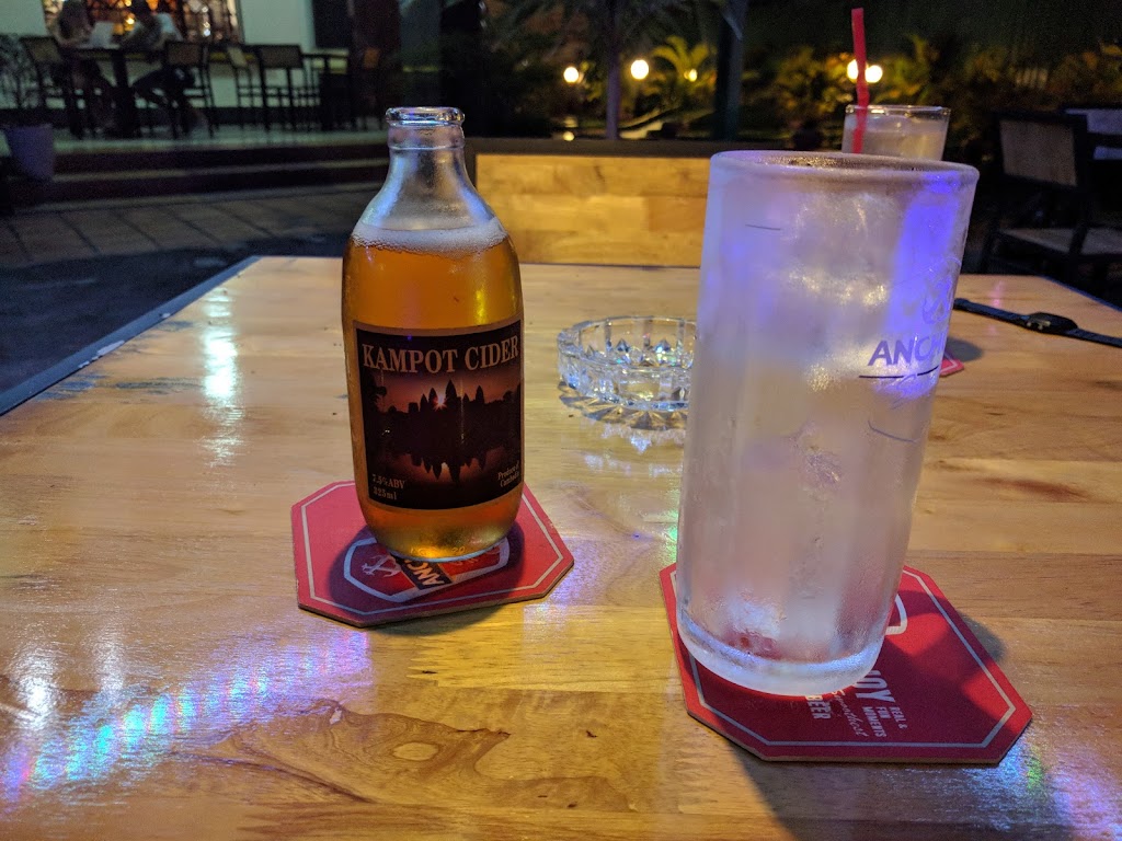 Fatigués mais pas inspiré par la nourriture de l’hôtel, on finit par tomber sur un petit resto “Khmer grill” un peu moderne et avec un serveur super sympa.